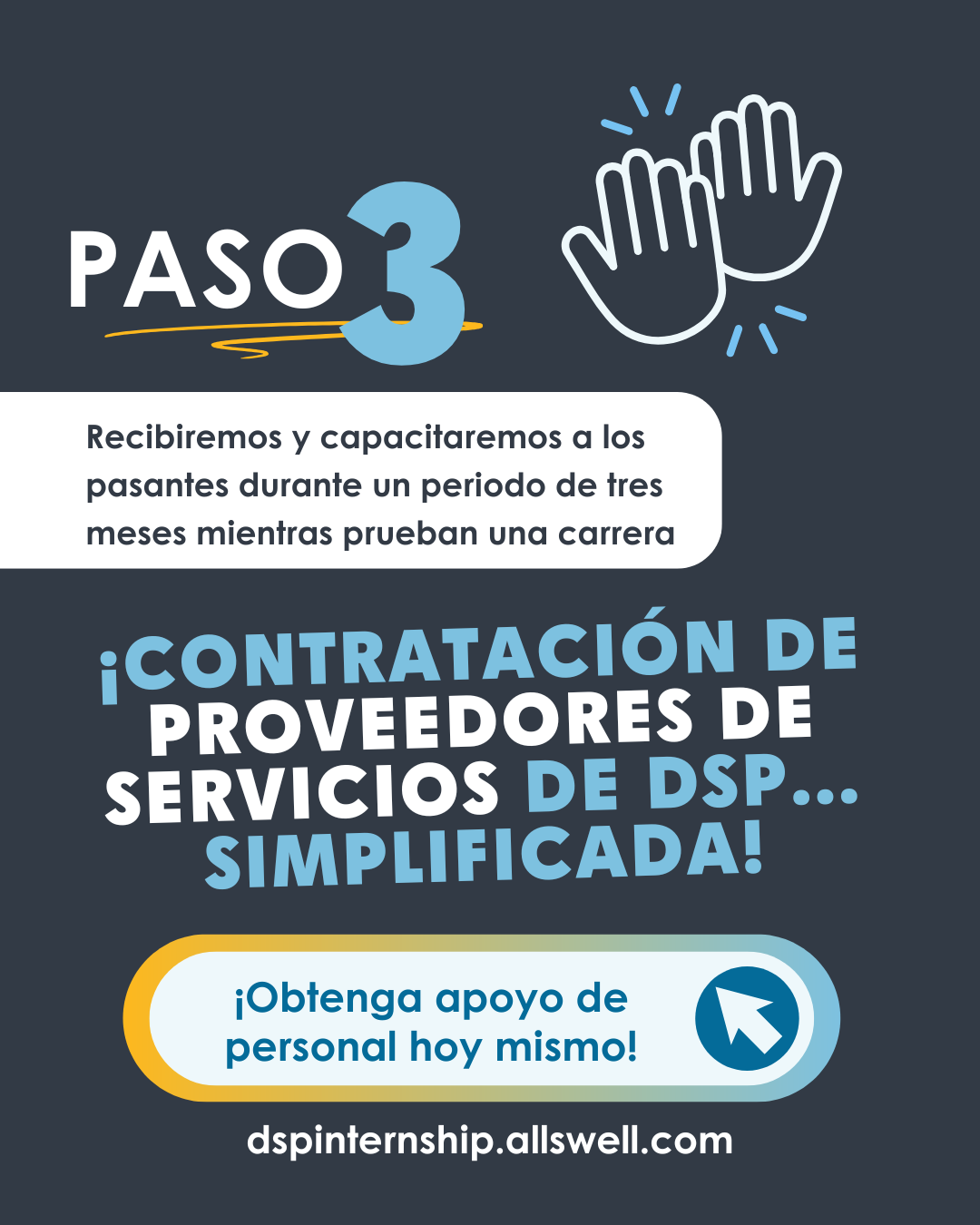 Los profesionales de Apoyo Directo (DSP por sus siglas en inglés) apoyan a las personas con discapacidad para que vivan, trabajen y prosperen en sus comunidades. El Programa de Pasantías de DSP le ofrece capacitación, mentoría y un camino hacia un trabajo significativo.